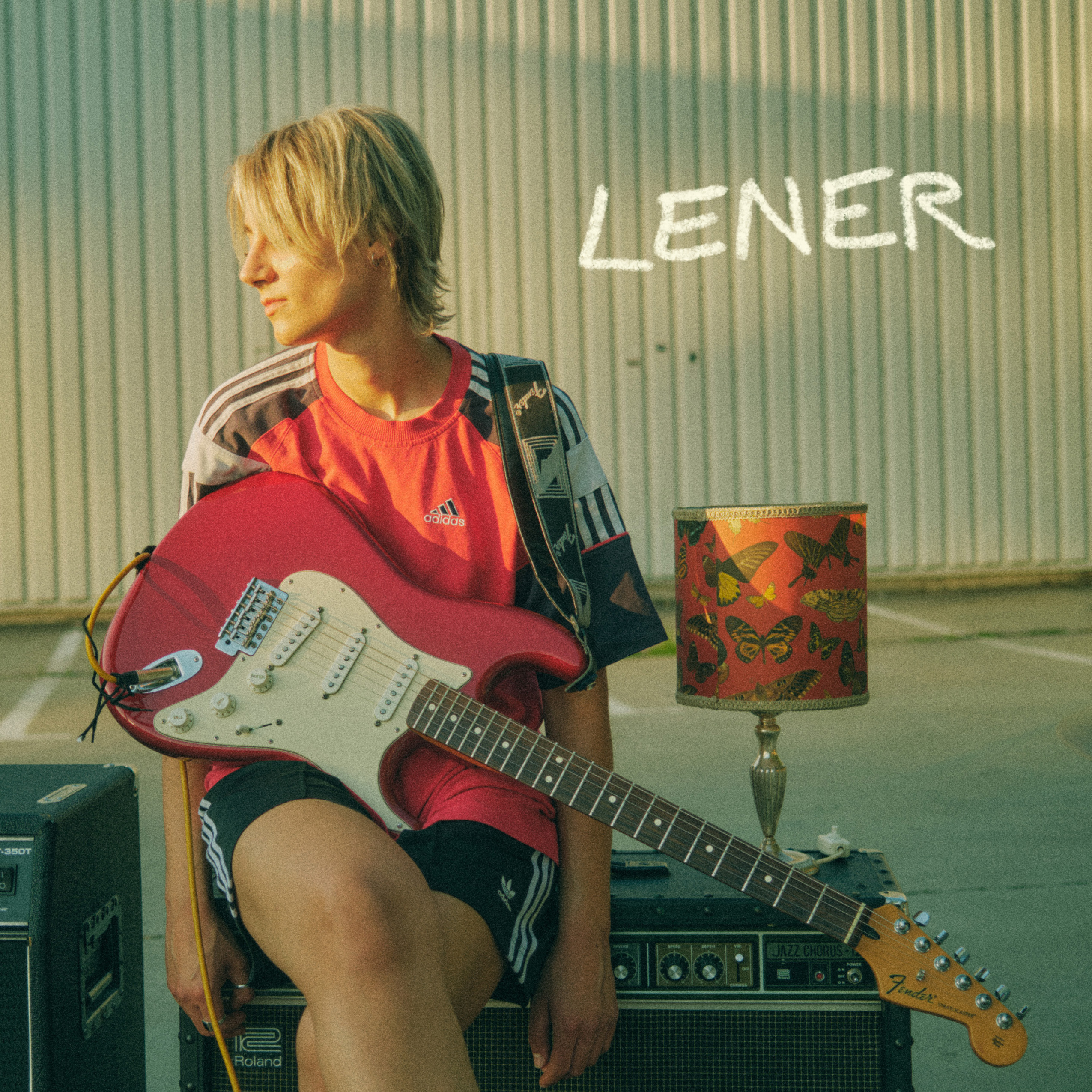 Die Felder glühen im letzten Licht, ein trockener Wind wirbelt Staub über den Asphalt. Dort, wo die Stadt aufhört und die Leere beginnt, steht Lener im offenen Scheunentor. Die Fender Strat hängt tief, die Jacke zu groß, die Augen scharf. Eine Gestalt wie ein Echo aus einer anderen Zeit – oder einer, die noch nicht ganz existiert. Aufgewachsen auf einem abgelegenen Hof am Ende der Stadt Freising, zwischen Waldrand und horizontaler Brache. Viele Jahre dröhnten ihre verzerrten Gitarren in der leeren Scheune, durch den alten Bretterverschlag in die Einöde. Nachts zirpte und heulte der anliegende Wald. Auf Suche nach Hexen und Gespenstern schlich Lener mit ihren Drillingsschwestern durch die Bäume, später auf der Pirsch nach magischem Material für ihre ersten Songs. Heute streift die 26-jährige mit Sketchbook durch den Wald der Stadt, den verwunschenen urbanen Orten zwischen Hauptbahnhof und Schwabing. Mit ihren 1,75m ist sie wie geboren für Observationen, schon früh zog es sie in die Zwischenräume – dorthin, wo Worte fließen, Linien verschwimmen und Musik alles zusammenhält. Die Songwriterin blickt durch den Lärm der modernen Welt auf das tiefe und teils banale Wesen der Dinge. Ruhig dechiffriert sie die Träume ihrer Freundinnen und Kommilitonen, in Münchner Cafés und Clubs gesammelte Mosaike aus Selbstgesprächen einer Generation zwischen Optimierung und Punk. Ihre Outsider-Position ist selbst gewählt und eine klassische Perspektive der Lyrik: zwischen allen Stühlen, als stoische Beobachterin vor kollabierenden Gitarrenwänden. Ihre Stimme rollt über die Riffs wie ein langsam aufziehendes Gewitter, zwischen Barnetts Lässigkeit und Patti Smiths fiebriger Unruhe. Die Melodien taumeln zwischen Erschöpfung und Trotz, die Texte sind Skizzen auf zerknülltem Papier – rau, unfertig, ehrlich. Texte wie kleine Comic-Orakel, geschrieben mit Edding und Herzblut. Dazu glitzert eine Bildwelt aus Skizzen – düstere, verzweigte Figuren, oft so brüchig und flüchtig wie die Geschichten, die sie erzählt.
